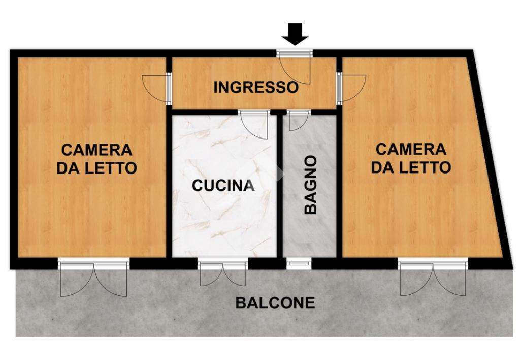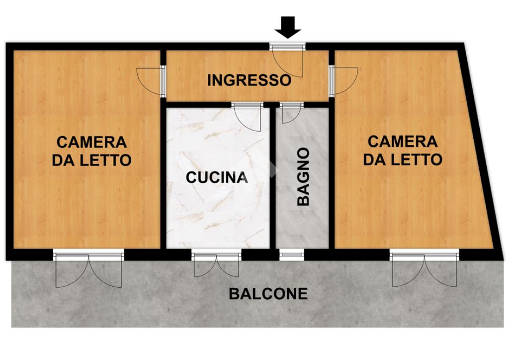 L’alloggio si apre su un corridoio centrale che distribuisce in modo funzionale tutti gli ambienti della casa. La composizione interna prevede una camera da letto, un soggiorno, una cucina abitabile e un bagno finestrato. Il vero valore aggiunto dell'immobile è l’ampio balcone vivibile, accessibile sia dalle camere che dalla cucina, ideale per momenti di relax all’aperto o per pranzi e cene durante la bella stagione.