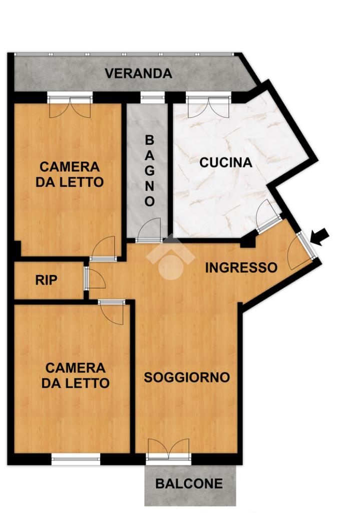 L’ingresso si apre su un comodo corridoio che conduce alla zona giorno, composta da un accogliente soggiorno con accesso diretto al balcone affacciato su Via Aleardi, ideale per godere di luce naturale durante tutto il giorno, e da una grande cucina abitabile con accesso alla veranda.